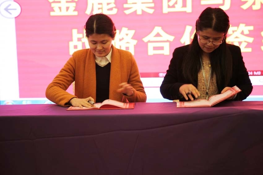 金鹿集團品牌副總監方清容與軟眾公關項目總監李妍簽訂戰略合作協議
