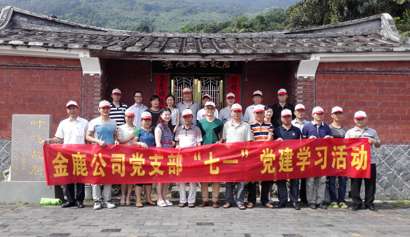 為紀念中國共產黨誕生94周年,7月1日當天,金鹿集團黨支部組織全體黨員,前往南安市金淘鎮占石村葉飛將軍故居,開展“緬懷先烈·牢記歷史”的黨建活動,瞻仰學習開國上將葉飛將軍的革命事跡和老一輩革命英雄們的優良傳統,用這樣的方式來表達全體黨員同志對黨的敬意。
