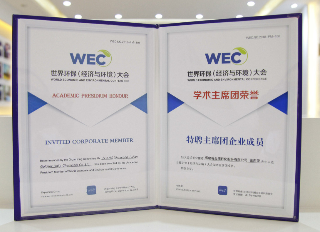 金鹿日化榮獲世界環保(經濟與環境)大會國際大獎