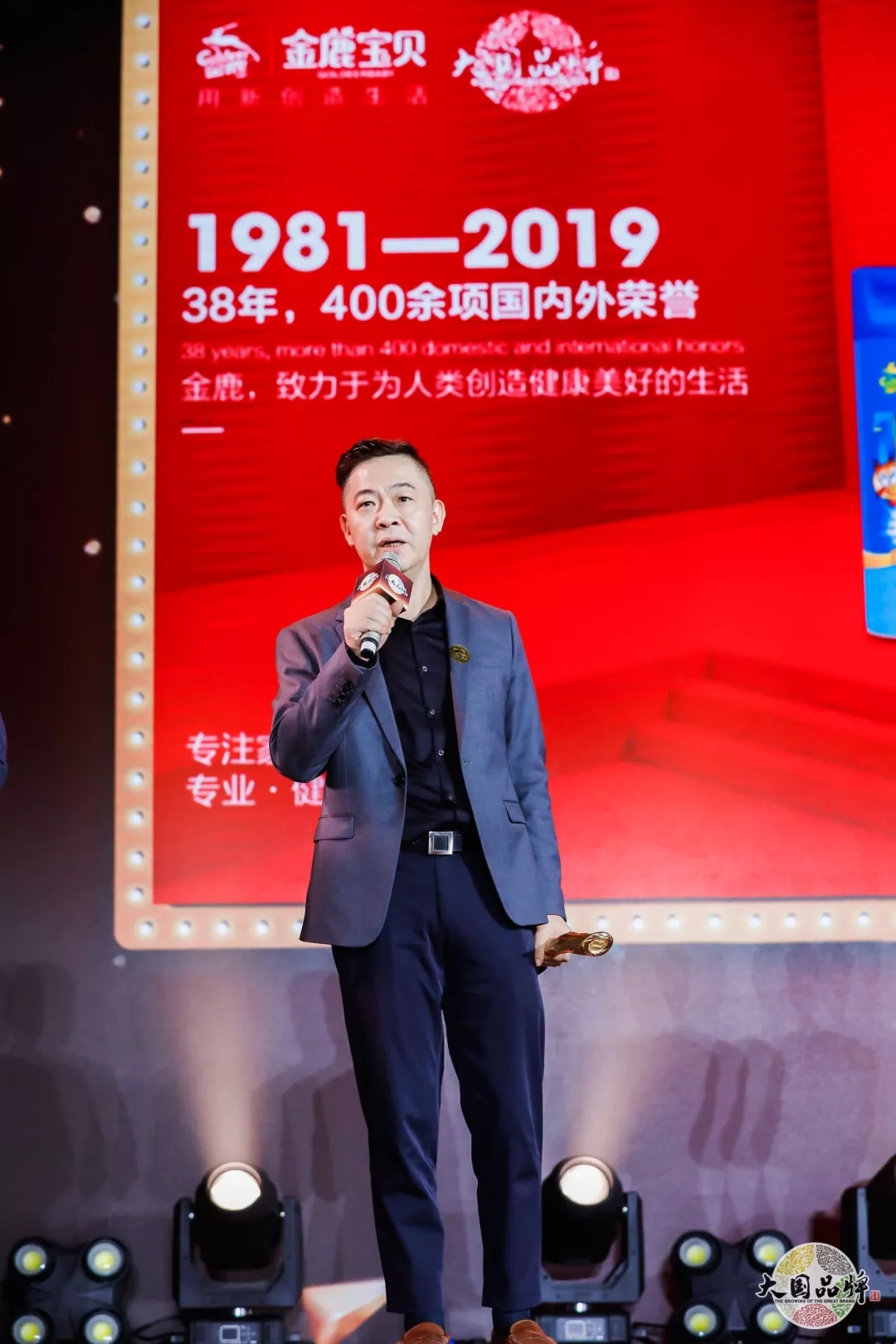 張向榮先生代表金鹿上臺領獎并發表獲獎感言:“感謝大會授予金鹿‘新中國成立70年70品牌’的這份殊榮,金鹿創立于1981年,38年來始終專注于家用衛生清潔領域,用專業、健康、安全的產品來服務于千千萬萬個家庭,根基越深,所承載的責任就越重,相信金鹿還將繼續用自我的成果,展現中國品牌的自信。”